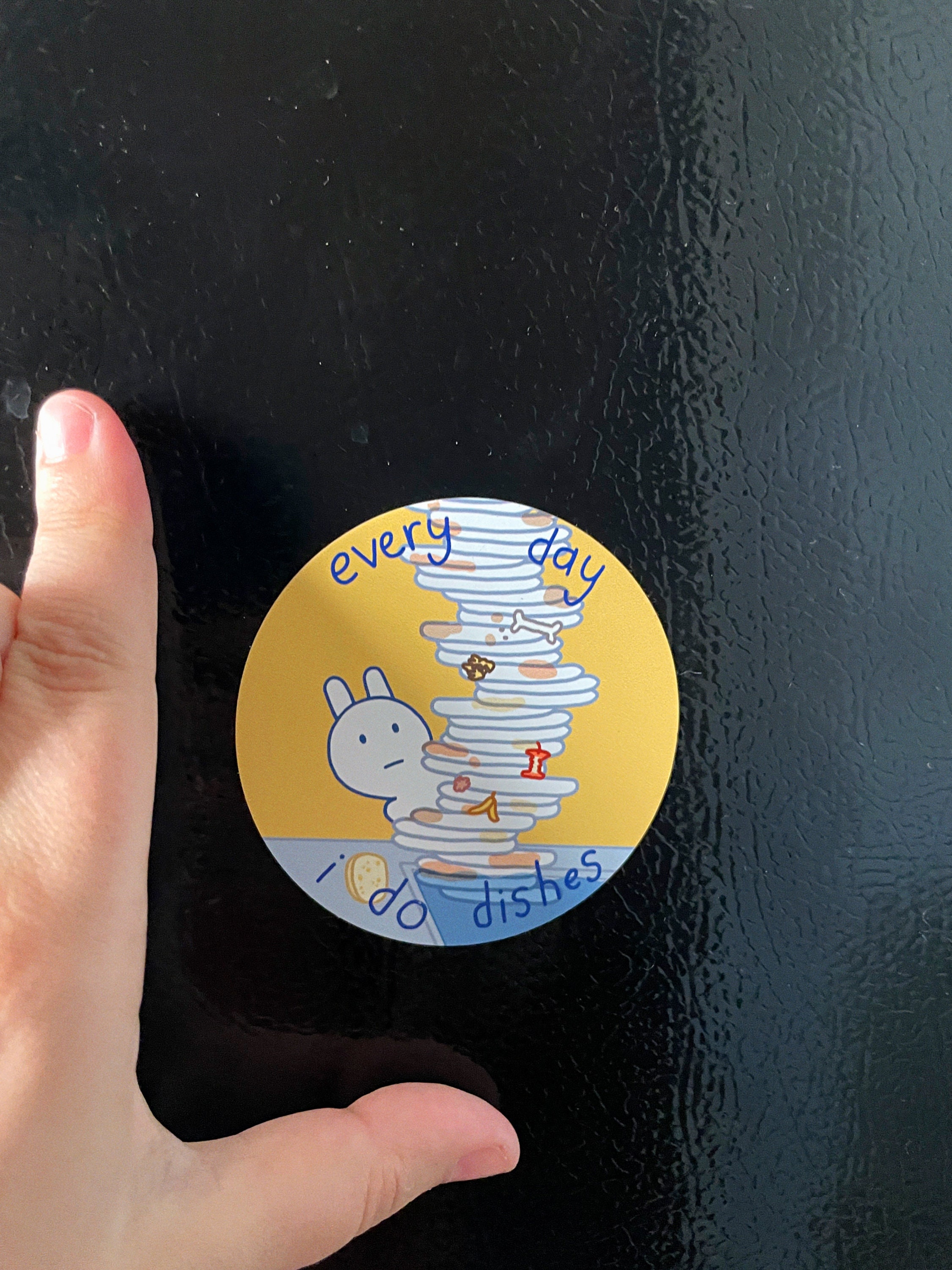 Very cute, looks just like the pics. I put this on my dishwasher to remind me of my plight.